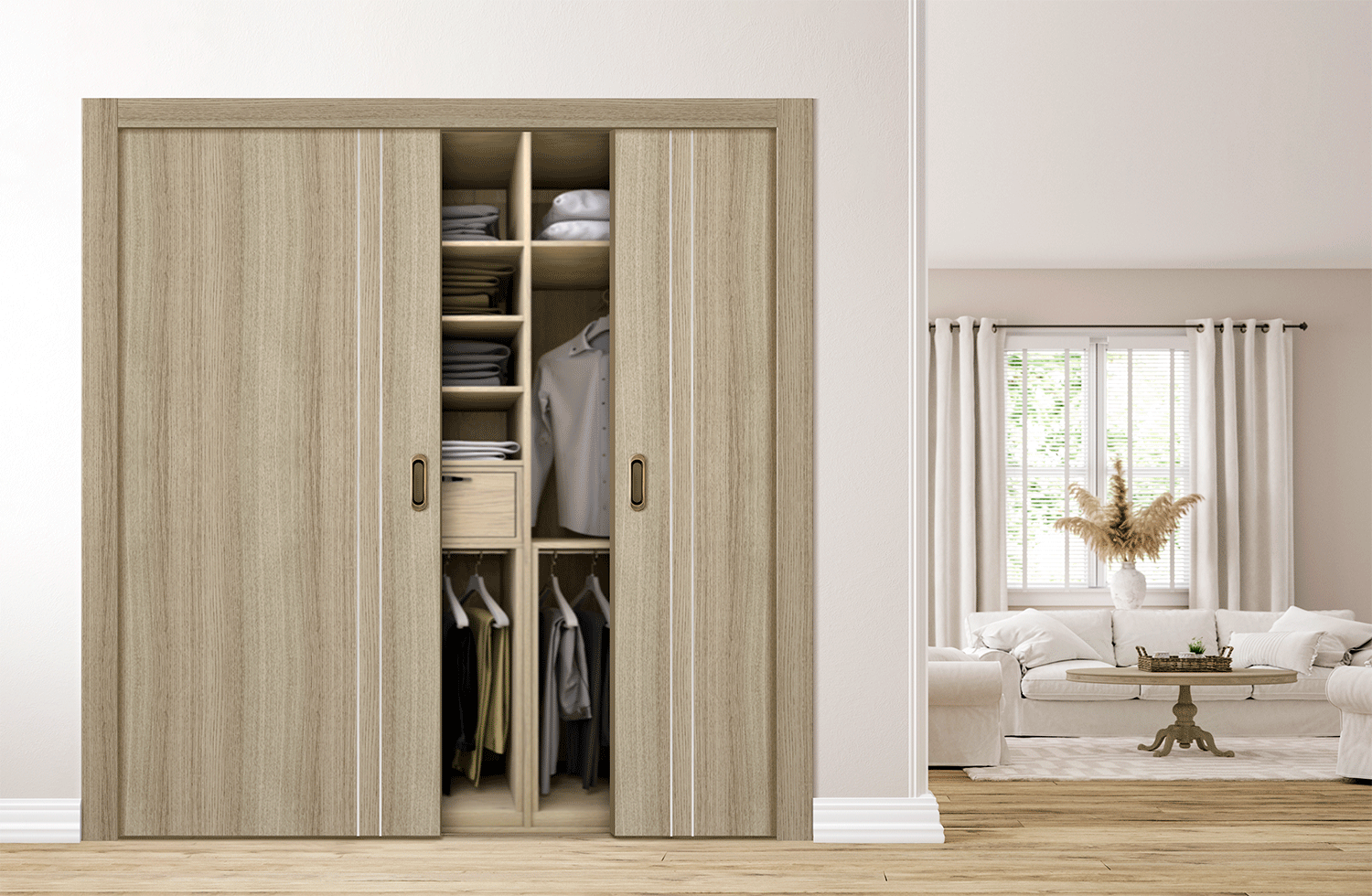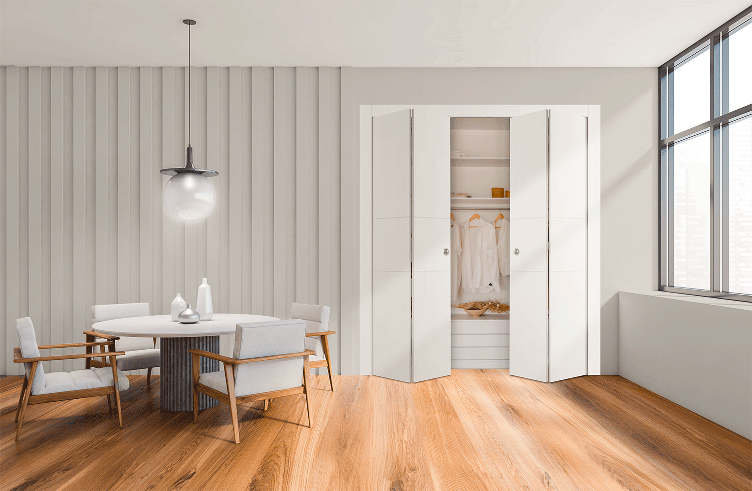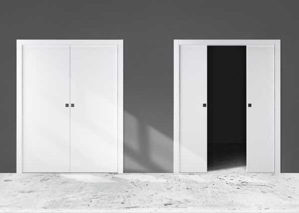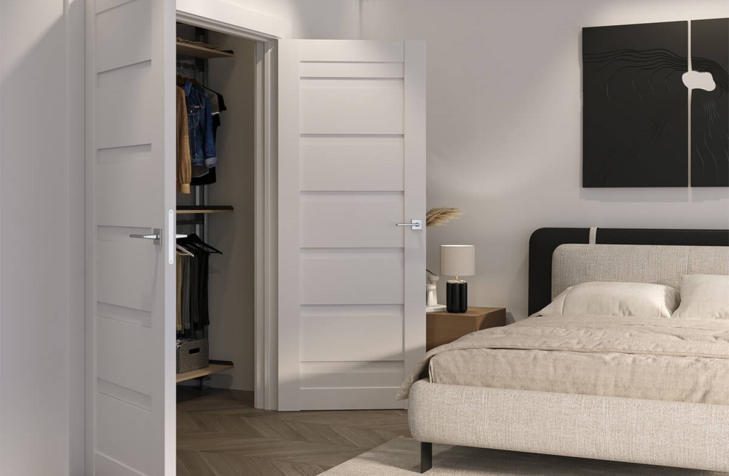 Different door configurations provide options for different use scenarios. Like, for example, bi-fold and bypass configuration for closet doors. Or you can choose a barn door to install in your living room. The possibilities are endless.