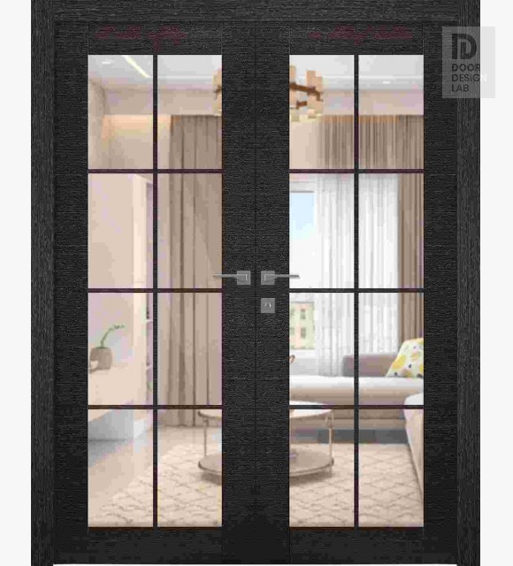 Avanti 8 Lite Clear Vetro Black Apricot Modern Interior Double Swing Doors by Belldinni