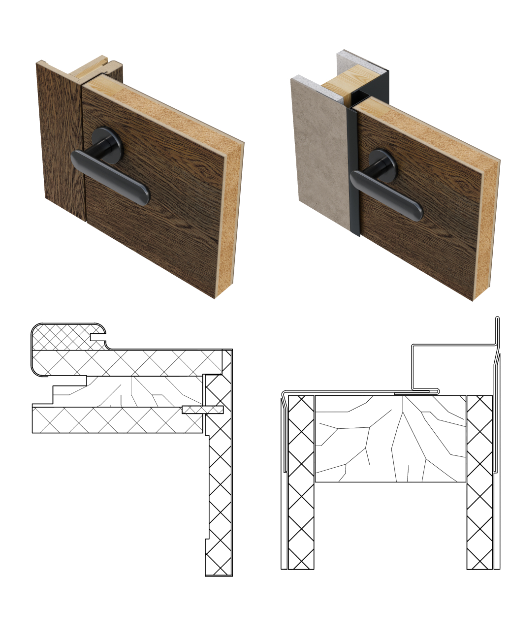 coplanar moldings, flush with the door slab, are ideal for inswing opening door options, providing a seamless and modern look. Invisible frames, used for outswing opening systems, are concealed in the wall, creating a sleek aesthetic appearance.