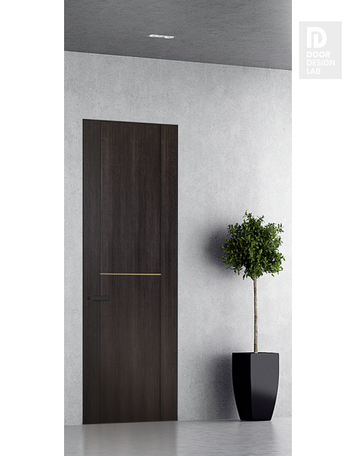 The golden strips create a wonderful visual effect. One horizontal golden strip enhances the beauty of the door handle.