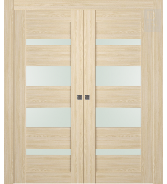 Avon 07-01 Vetro Loire Ash Modern Interior Double Pocket Doors by Belldinni