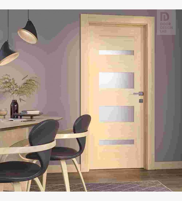 Modern design: eco-friendly materials, straight lines, and glass panels are the hallmarks of the door in a classic style with hi-tech highlights. The minimalistic design of the slab will fit harmoniously into every room. This door features five rectangular panels alternated with four frosted white glass inserts. Thanks to the noble shade, Avon 07-01 Vetro will refresh your interior and become an accent piece of your home or apartment.