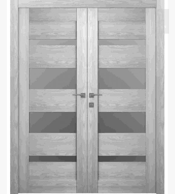 Avon 07-01 Vetro Ribeira Ash Modern Interior Double Swing Doors by Belldinni