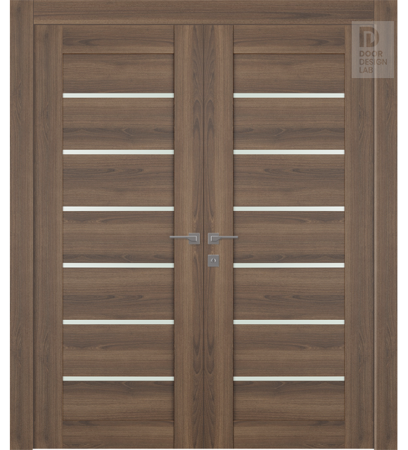 Avon 07-02 Vetro Pecan Nutwood Modern Interior Double Swing Doors by Belldinni