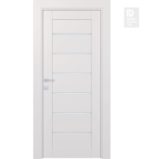 Modern design: eco-friendly materials, straight lines, and glass panels are the hallmarks of the door in a classic style with hi-tech highlights. The minimalistic design of the slab will fit harmoniously into every room. This door features seven rectangular panels alternated with six narrow frosted white glass inserts. Thanks to the noble shade, Avon 07-02 Vetro will refresh your interior and become an accent piece of your home or apartment.