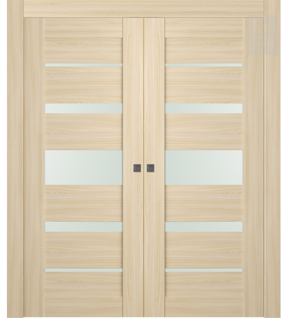 Avon 07-03 Vetro Loire Ash Modern Interior Double Pocket Doors by Belldinni