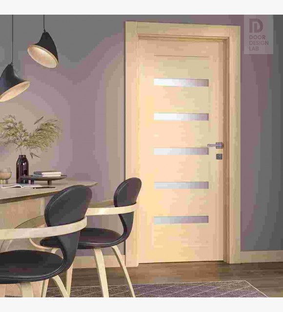 Modern design: straight lines, eco-friendly materials, and modern technologies are combined with the best industry standards. Avon 07-04 Vetro brings a classic touch to the sophisticated high-tech style. The interior door is decorated with five glass inserts of the same size to make your home bright and cozy.