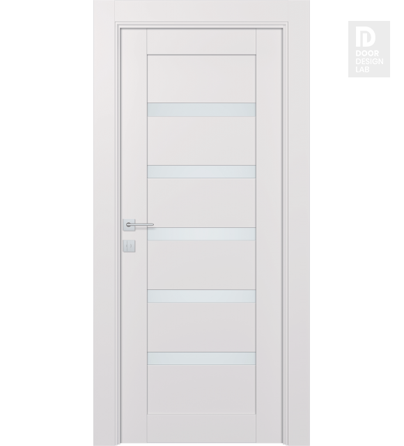 Modern design: straight lines, eco-friendly materials, and modern technologies are combined with the best industry standards. Avon 07-04 Vetro brings a classic touch to the sophisticated high-tech style. The interior door is decorated with five glass inserts of the same size to make your home bright and cozy.