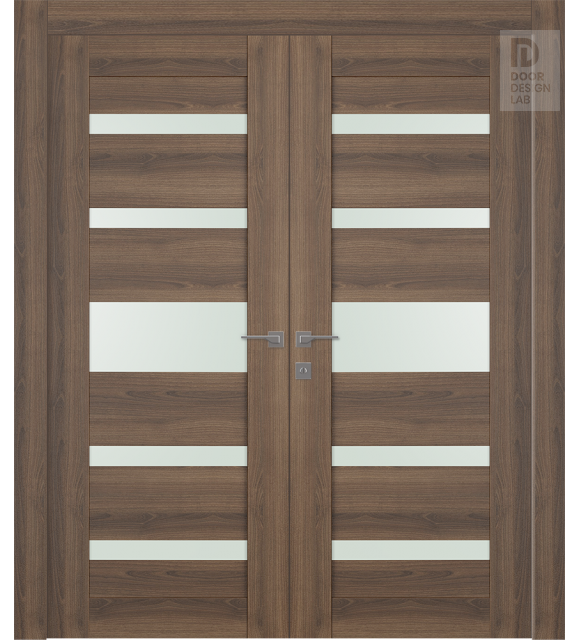 Avon 07-05 Vetro Pecan Nutwood Modern Interior Double Swing Doors by Belldinni