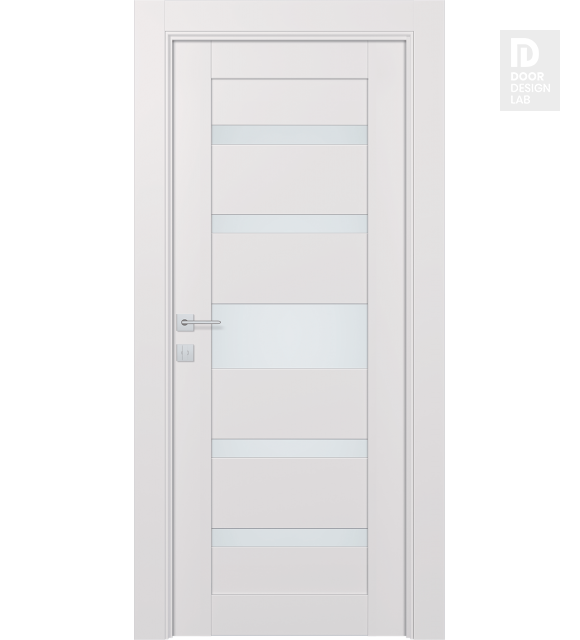 Modern design: eco-friendly materials, straight lines, and glass panels are the hallmarks of the door in a classic style with hi-tech highlights. The minimalistic design of the slab will fit harmoniously into every room. This door features six rectangular panels alternated with five frosted white glass inserts. Thanks to the noble shade, Avon 07-05 Vetro will refresh your interior and become an accent piece of your home or apartment.
