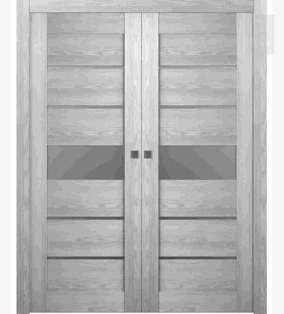 Avon 07-06 Vetro Ribeira Ash Modern Interior Double Pocket Doors by Belldinni