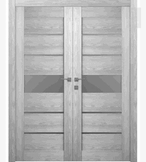 Avon 07-06 Vetro Ribeira Ash Modern Interior Double Swing Doors by Belldinni
