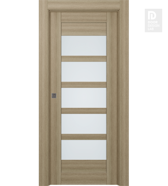 Modern design: eco-friendly materials, straight lines, and glass panels are the hallmarks of the door in a classic style with hi-tech highlights. The minimalistic design of the slab will fit harmoniously into every room. This door features five frosted white glass inserts and four rails stacked in Shaker style. Thanks to the noble shade, Avon 07-07 Vetro will refresh your interior and become an accent piece of your home or apartment.