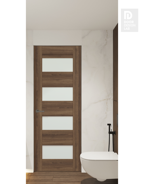 Modern design: eco-friendly materials, straight lines, and glass panels are the hallmarks of the door in a classic style with hi-tech highlights. The minimalistic design of the slab will fit harmoniously into every room. This door features four frosted white glass inserts and three rails stacked in Shaker style. Thanks to the noble shade, Avon 07-08 Vetro will refresh your interior and become an accent piece of your home or apartment.