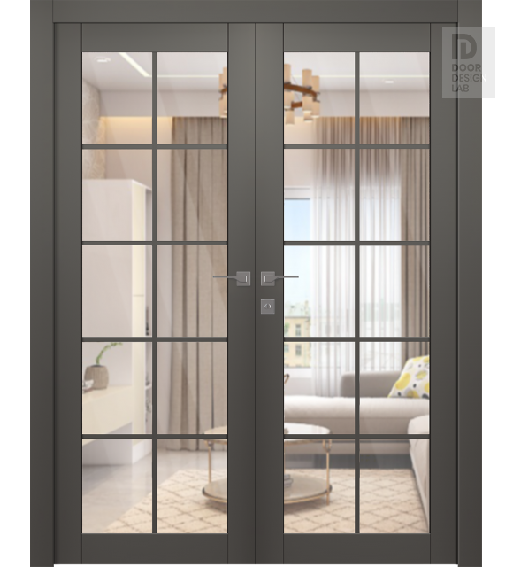 Avon 10 Lite Clear Gray Matte Modern Interior Double Swing Doors by Belldinni