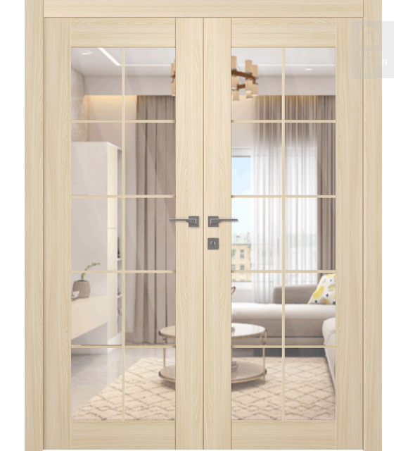 Avon 10 Lite Clear Loire Ash Modern Interior Double Swing Doors by Belldinni