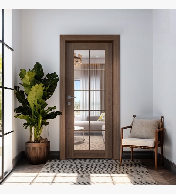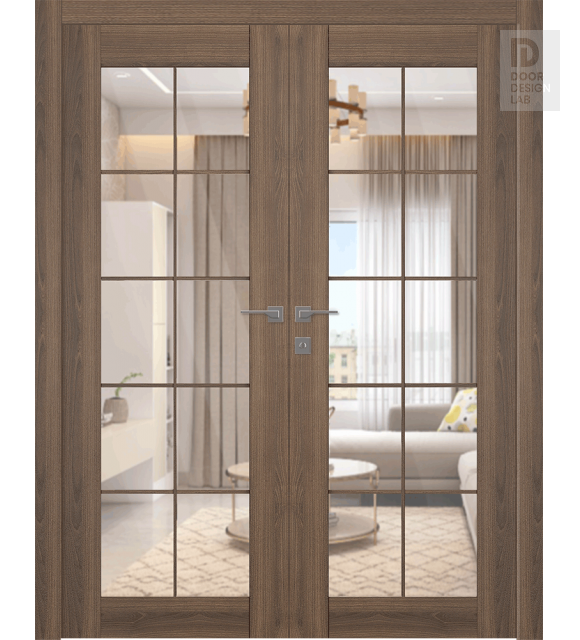 Avon 10 Lite Clear Pecan Nutwood Modern Interior Double Swing Doors by Belldinni