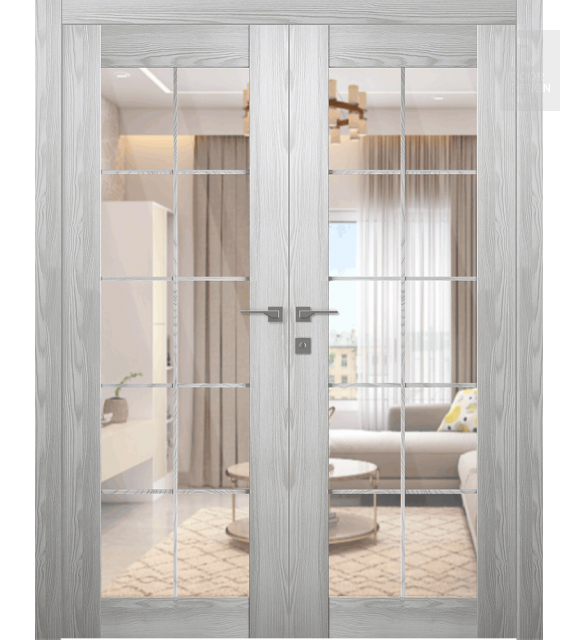 Avon 10 Lite Clear Ribeira Ash Modern Interior Double Swing Doors by Belldinni