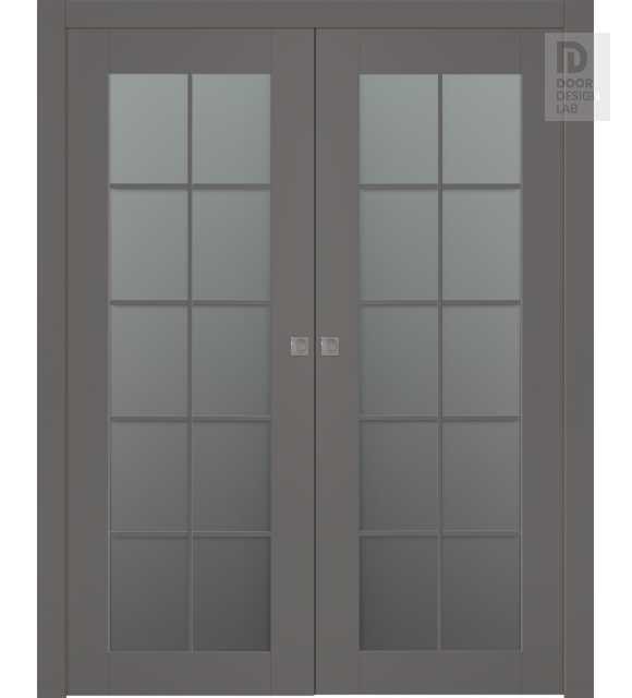 Avon 10 Lite Vetro Gray Matte Modern Interior Double Pocket Doors by Belldinni