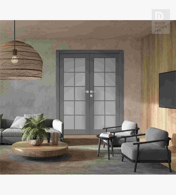 Avon 10 Lite Vetro Gray Matte Modern Interior Double Swing Doors by Belldinni