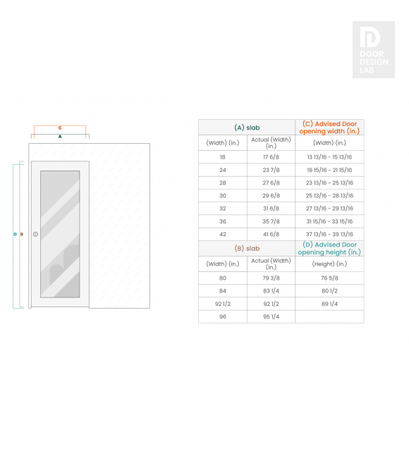 | Recommended RO (Width) | 2 Door Slabs Width + 1" |