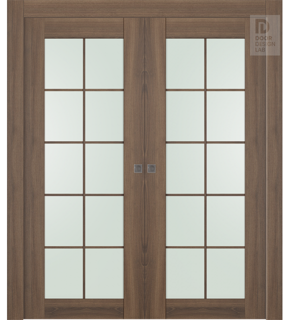 Avon 10 Lite Vetro Pecan Nutwood Modern Interior Double Pocket Doors by Belldinni