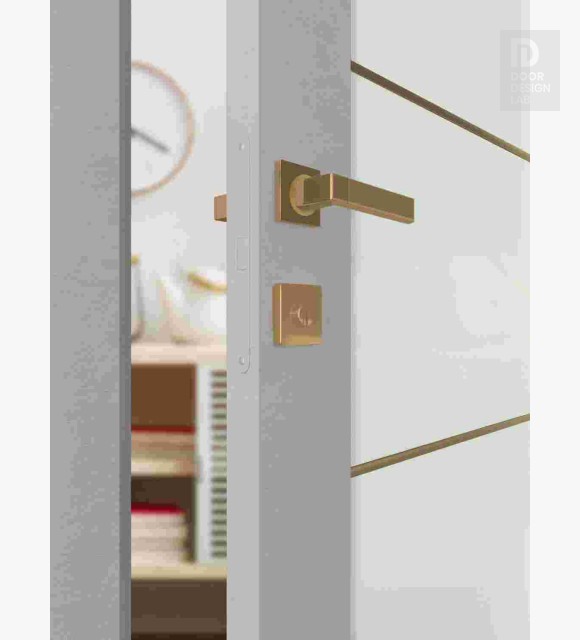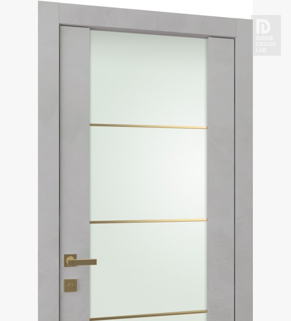 Avon 202 4H Gold Strips Vetro Light Urban Modern Interior Double Swing Doors by Belldinni
