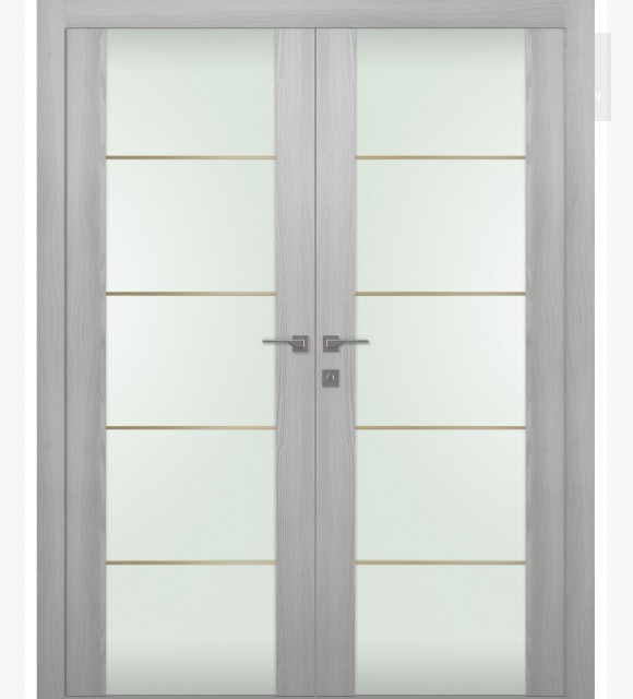 Avon 202 4H Gold Strips Vetro Ribeira Ash Modern Interior Double Swing Doors by Belldinni