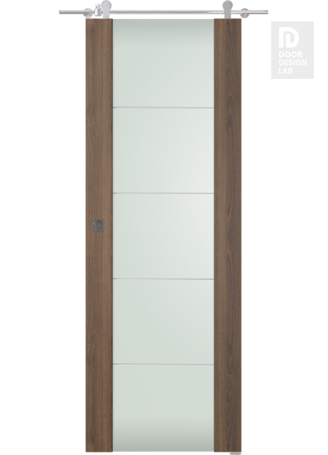 Avon 202 4H Vetro Pecan Nutwood Modern Interior Barn Door by Belldinni