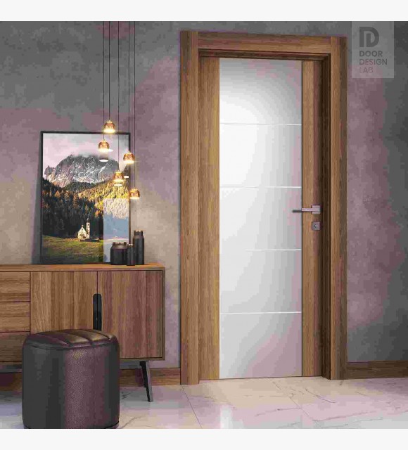 Modern design: eco-friendly materials, straight lines, and glass panels are the hallmarks of the door in a French style. The minimalistic design of the slab will fit harmoniously into every room. Avon 202 4H Vetro will refresh your interior and become an accent piece of your home or apartment thanks to the noble shade, four aluminum strips, and impeccable frosted high-strength glass insert.