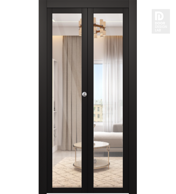 Avon 207 Clear Vetro Black Matte Modern Interior Bifold Doors by Belldinni