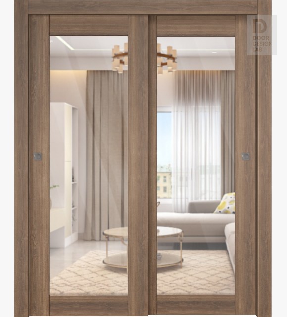 Avon 207 Clear Vetro Pecan Nutwood Modern Interior Bypass Doors by Belldinni
