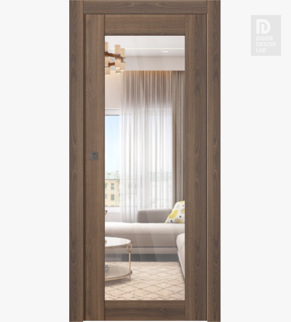 Avon 207 Clear Vetro Pecan Nutwood Modern Interior Pocket Door by Belldinni