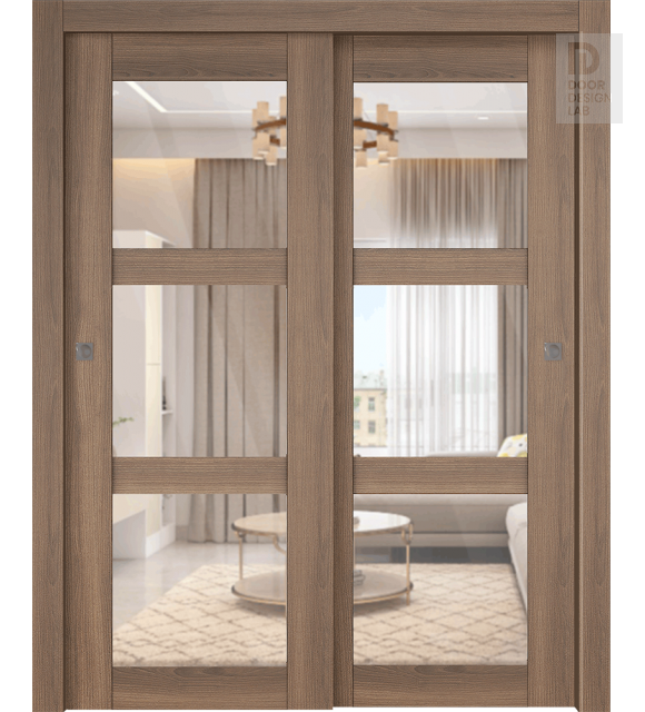 Avon 3 Lite Clear Vetro Pecan Nutwood Modern Interior Bypass Doors by Belldinni