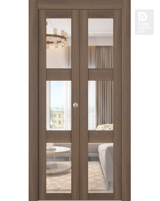 Avon 3 Lite Clear Vetro Pecan Nutwood Modern Interior Bifold Doors by Belldinni