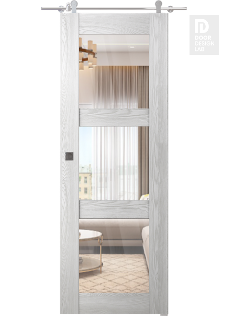 Avon 3 Lite Clear Vetro Ribeira Ash Modern Interior Barn Door by Belldinni