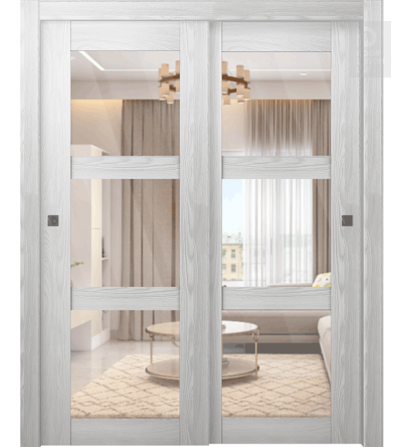 Avon 3 Lite Clear Vetro Ribeira Ash Modern Interior Bypass Doors by Belldinni