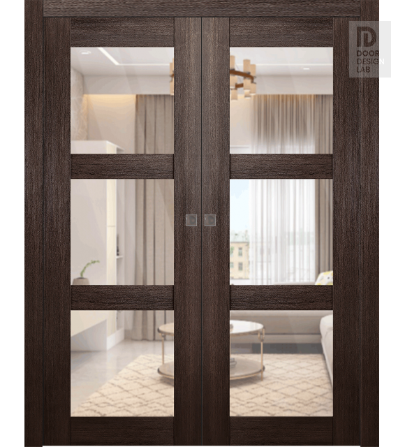 Avon 3 Lite Clear Vetro Veralinga Oak Modern Interior Double Pocket Doors by Belldinni
