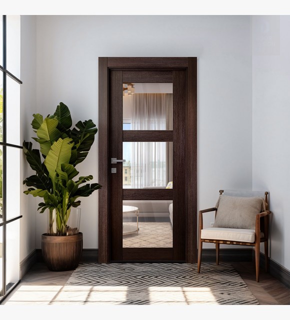 Modern design: eco-friendly materials, straight lines, and glass insert are the hallmarks of the door in a classic style with hi-tech highlights. The minimalistic design of the slab will fit harmoniously into every room. Thanks to the noble shade, Avon 3 Lite will refresh your interior and become an accent piece of your home or apartment.