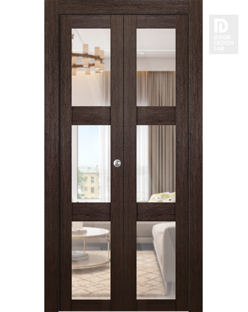 Avon 3 Lite Clear Vetro Veralinga Oak Modern Interior Bifold Doors by Belldinni