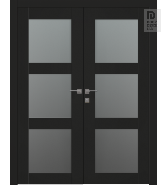 Avon 3 Lite Vetro Black Matte Modern Interior Double Swing Doors by Belldinni