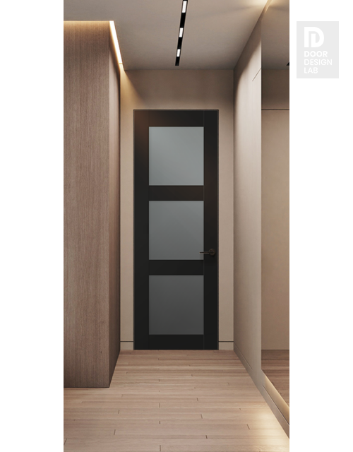 Avon 3 Lite Vetro Black Matte Modern Interior Frameless Door by Belldinni