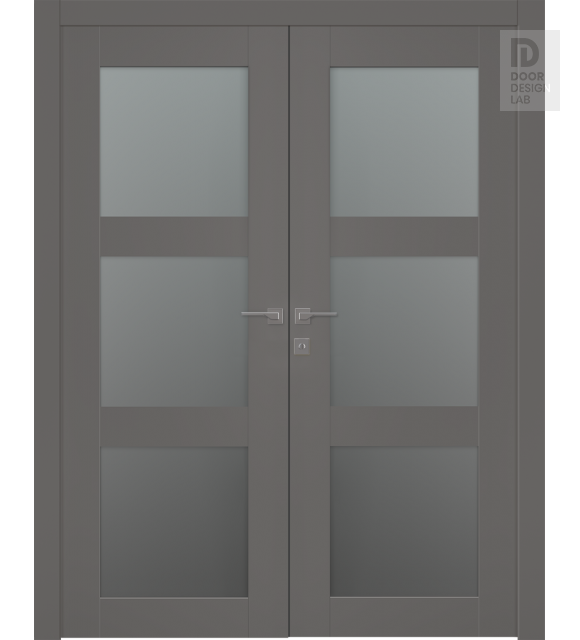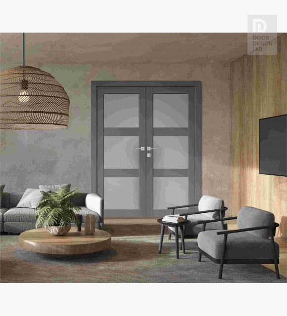 Avon 3 Lite Vetro Gray Matte Modern Interior Double Swing Doors by Belldinni