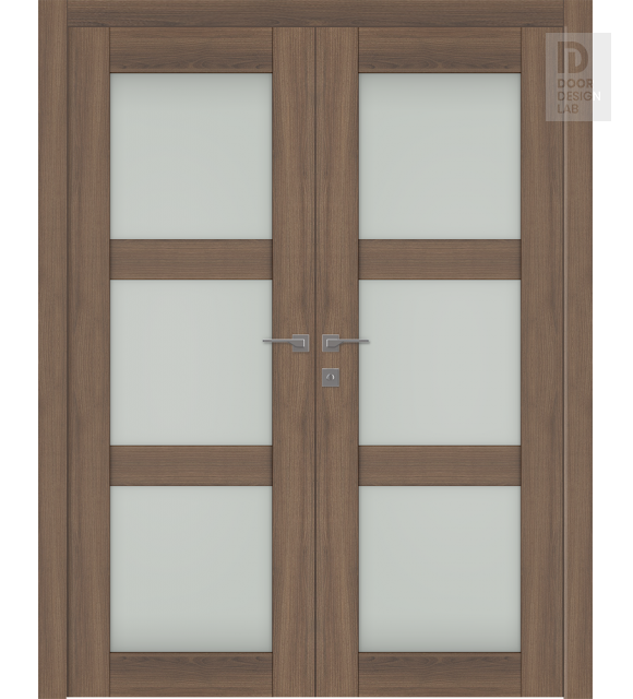 Avon 3 Lite Vetro Pecan Nutwood Modern Interior Double Swing Doors by Belldinni