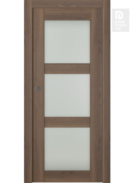Avon 3 Lite Vetro Pecan Nutwood Modern Interior Pocket Door by Belldinni