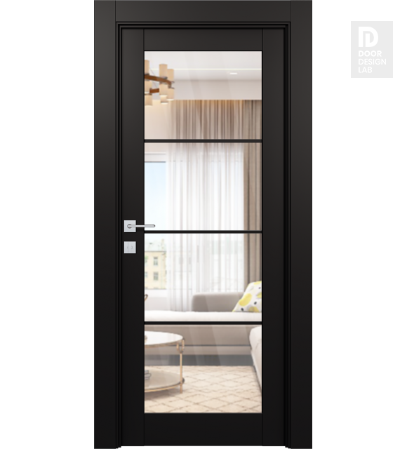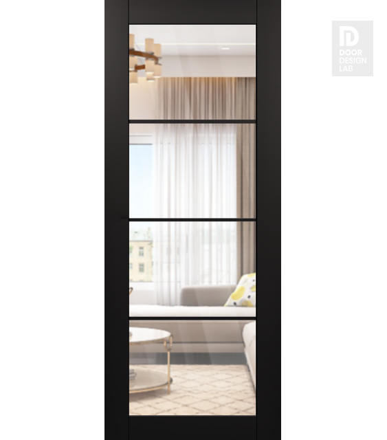 Avon 4 Lite Clear Vetro Black Matte Modern Interior Door by Belldinni