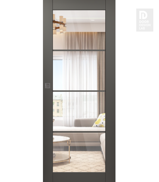 Avon 4 Lite Clear Vetro Gray Matte Modern Interior Hidden Barn Door by Belldinni
