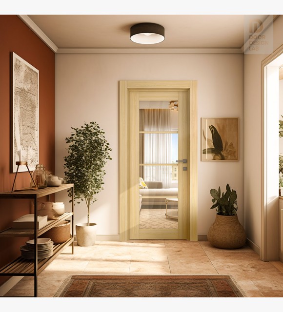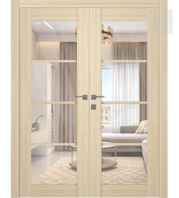Avon 4 Lite Clear Vetro Loire Ash Modern Interior Double Swing Doors by Belldinni
