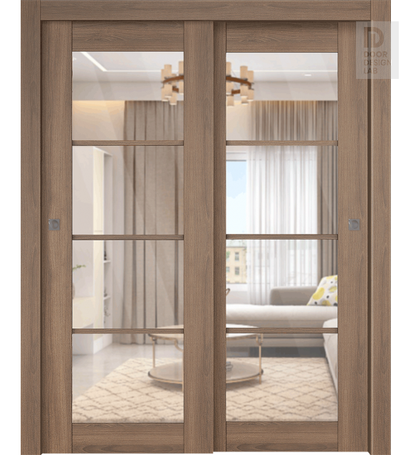 Avon 4 Lite Clear Vetro Pecan Nutwood Modern Interior Bypass Doors by Belldinni
