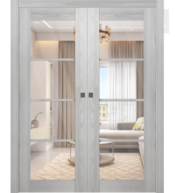 Avon 4 Lite Clear Vetro Ribeira Ash Modern Interior Double Pocket Doors by Belldinni